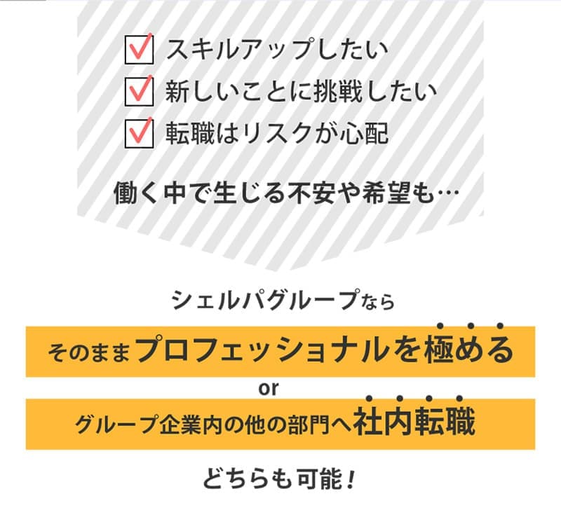 スキルアップし、やりたい仕事が増えた、変わったらジョブチェンジが可能です。