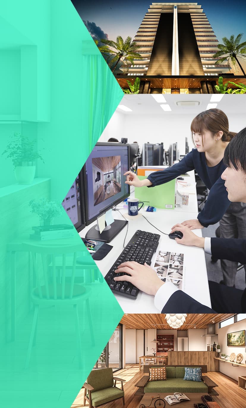 普段は建築CGパースの制作を担当しています。様々な物件に対応するため、毎日試行錯誤の連続ですが、先輩方のフォローもあり、成長を感じながら充実した日々を過ごしています!