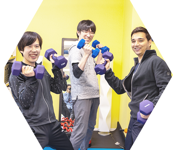 社内にトレーニングスペースがあり、軽い運動と気分転換ができます。
