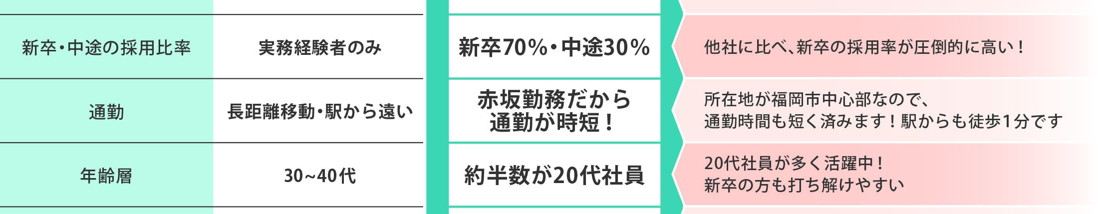 他社に比べ、新卒の採用率が圧倒的に高い!